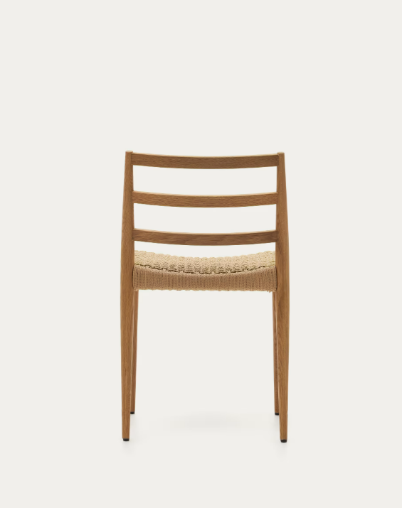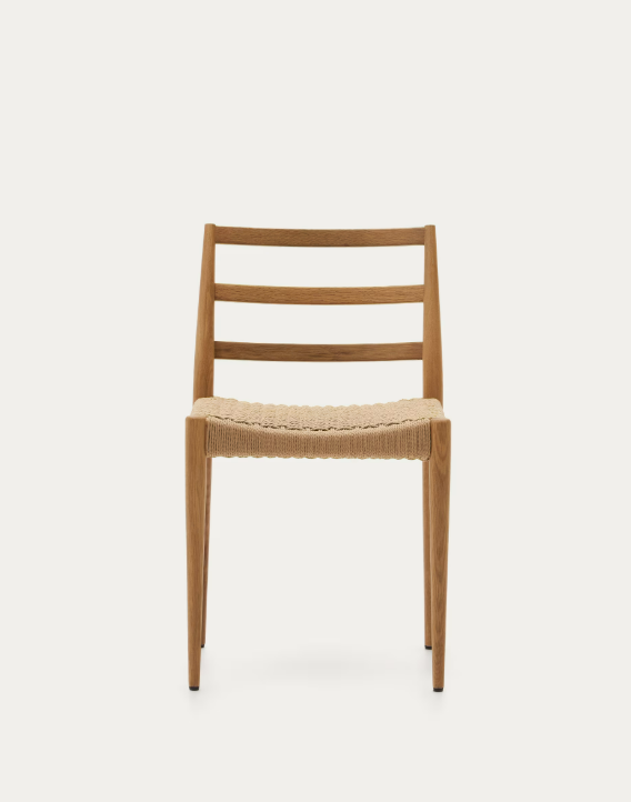The Analy chair is a handcrafted design with a solid oak wood structure and a seat made of hand-braided paper rope. It is ideally finished to allow nature into your house.