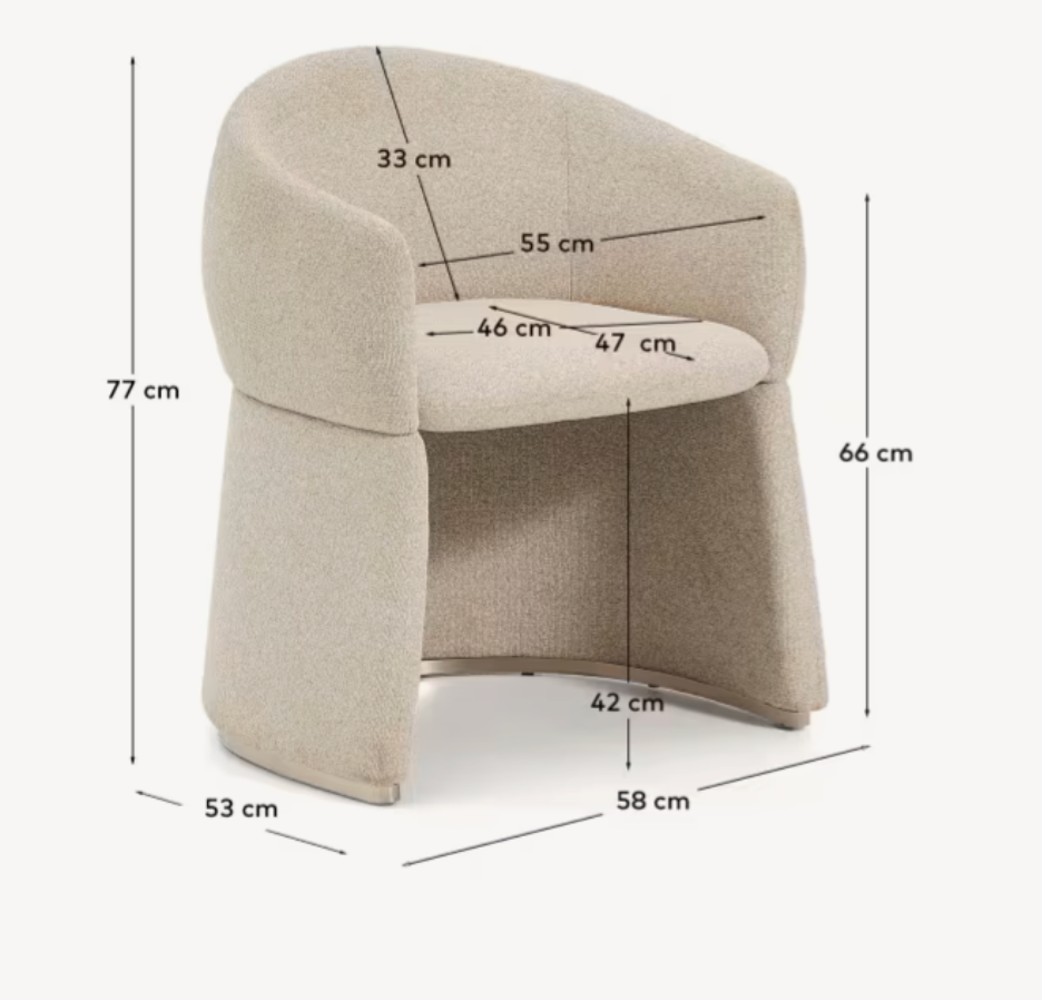 • Chair upholstered in small-structured chenille fabric with water-repellent treatment and made of 100% recycled polyester.