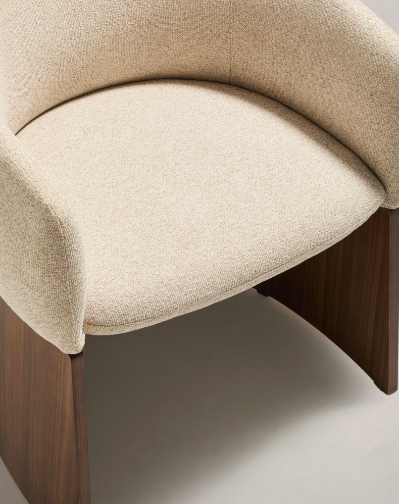 Bosca chair in beige chenille and walnut veneer FSC 100%