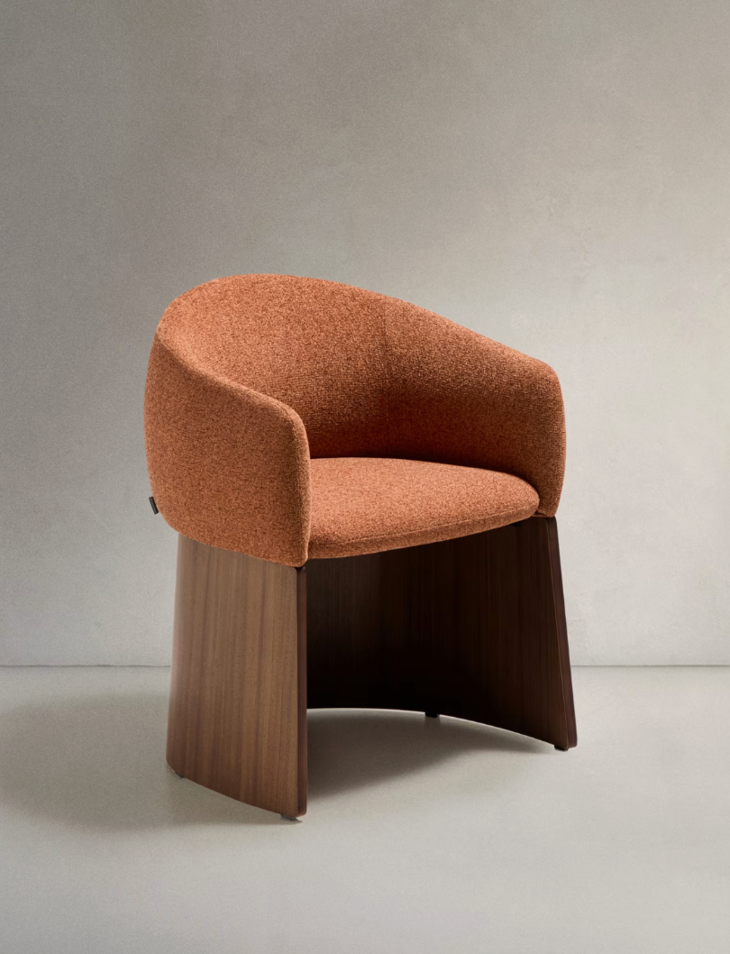 Bosca chair in terracotta chenille and walnut veneer FSC 100%