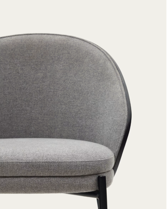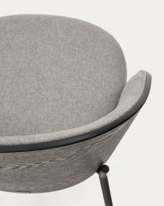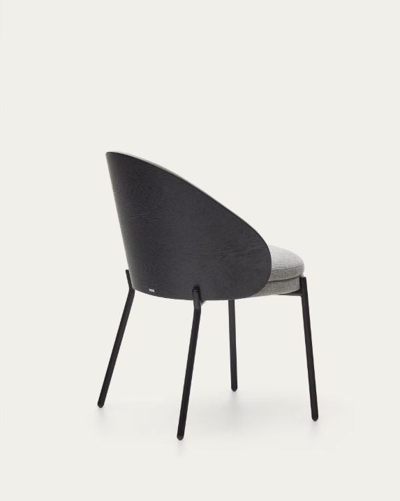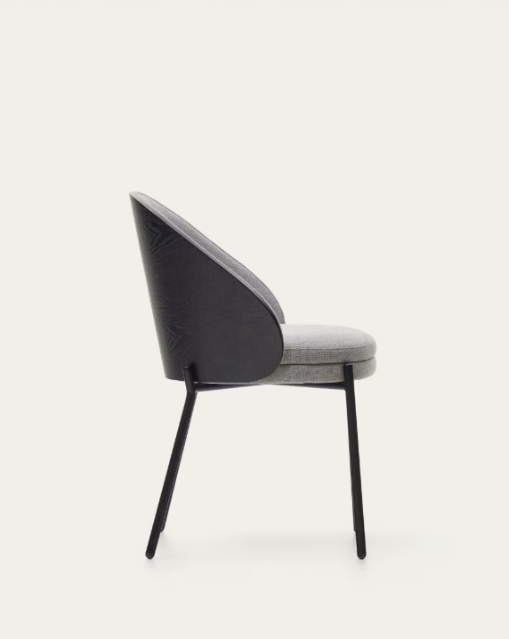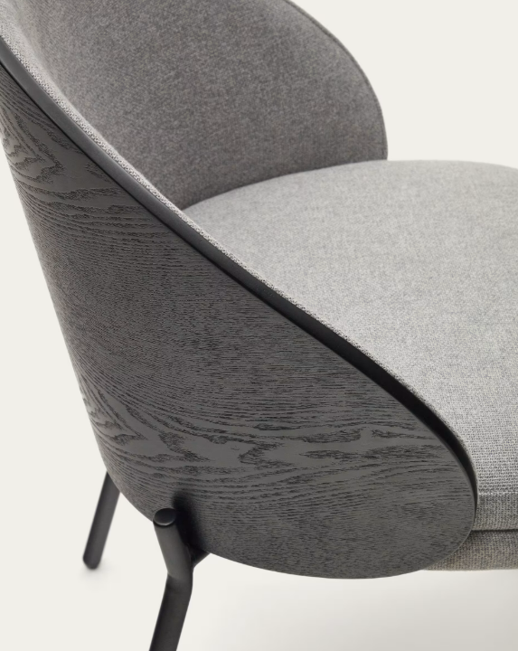 Eamy chair light grey chenilla and ash wood veneer with a black finish and black metal