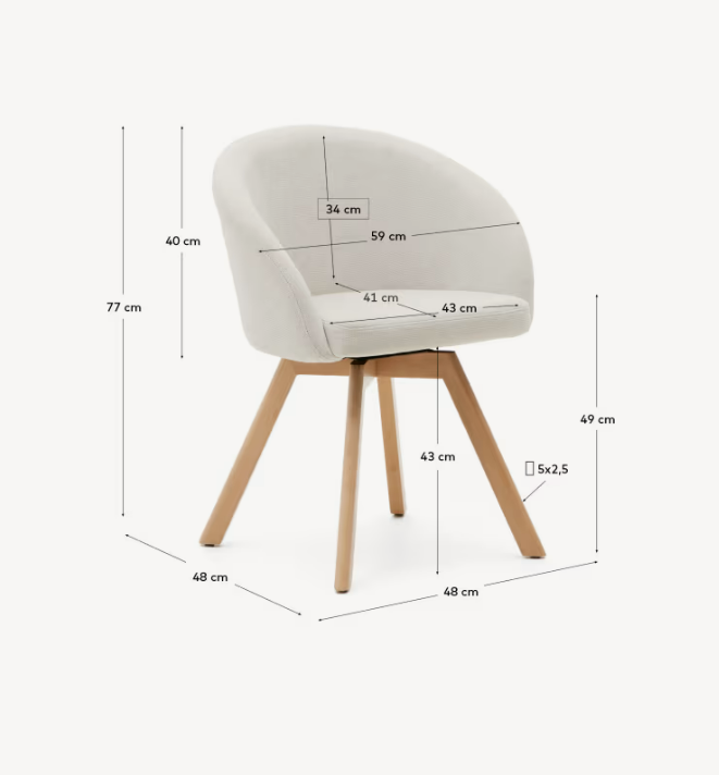 Marvin beige chenille swivel chair with solid beech wood legs in a natural finish FSC 100%