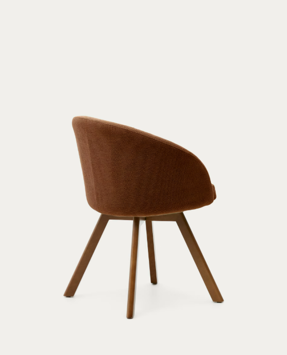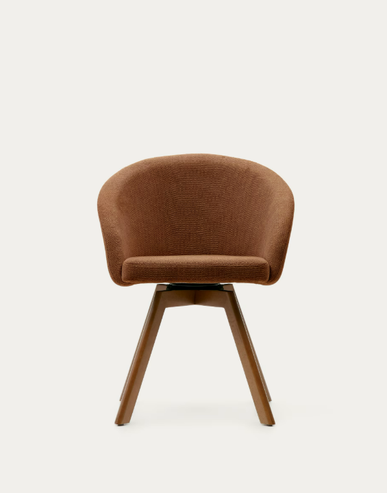 Marvin brown chenille swivel chair with solid beech wood legs with a walnut finish FSC 100%