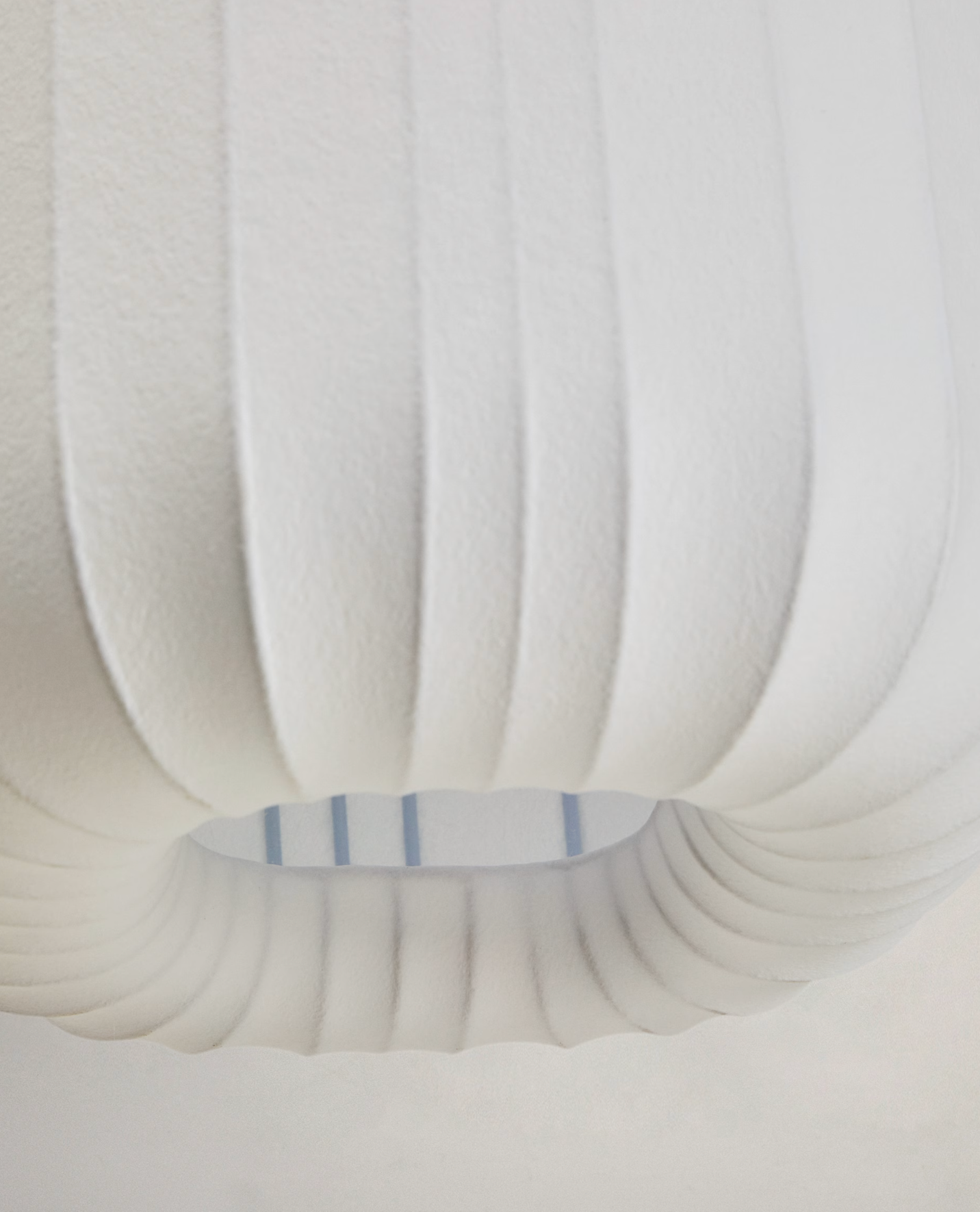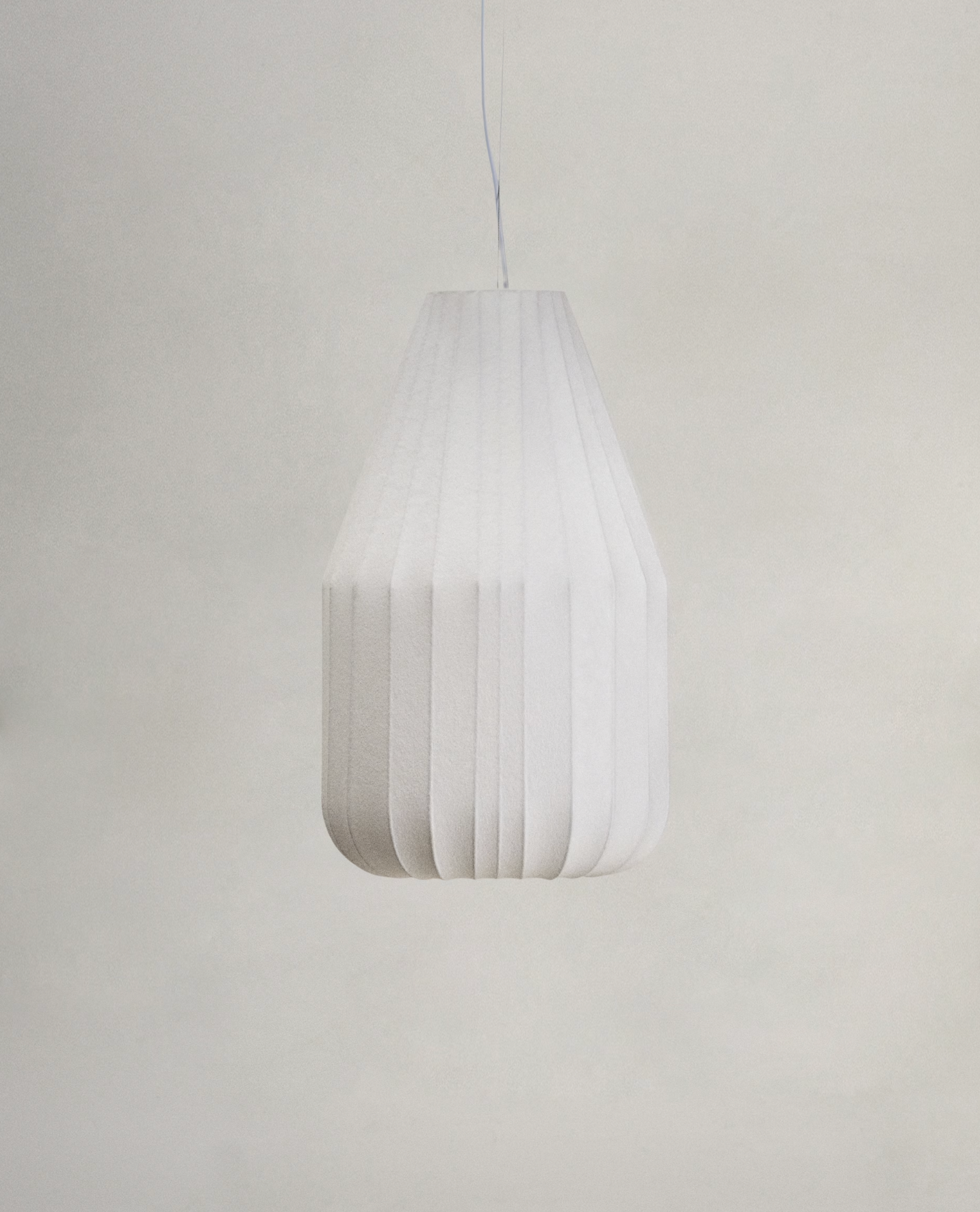 Somar turns light into part of the space. Its lampshades, made with synthetic fibres stretched over steel rods, feature a precise and delicate design. This work produces lightweight, organic, almost sculptural pieces that integrate lighting naturally into every setting.