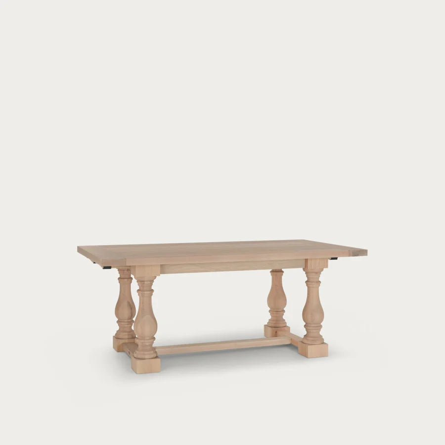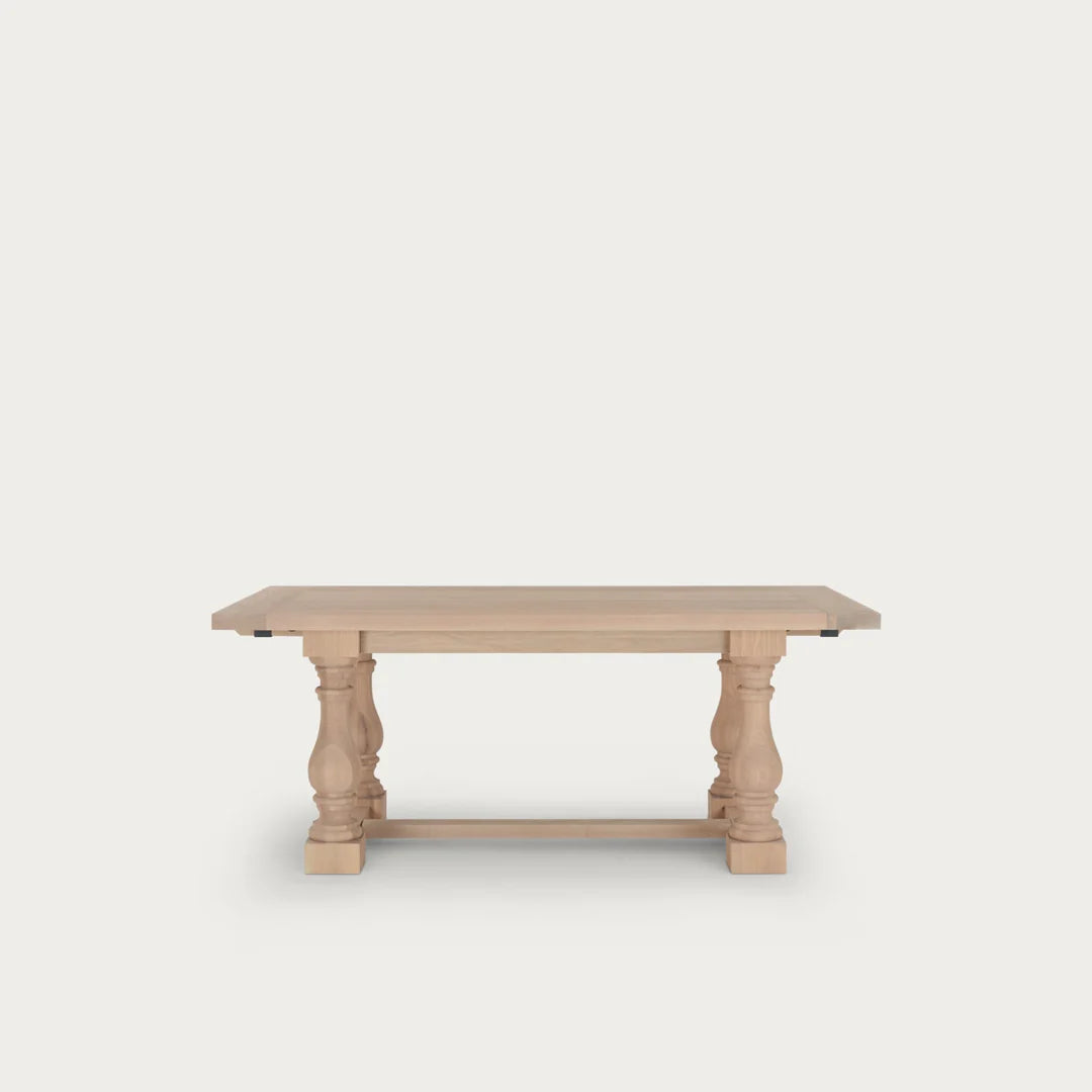 Balmoral is a celebration of the sheer strength and beauty of solid oak. Its design draws on the shapes found in classical architecture, with striking baluster legs supporting the thick tabletop. This extending version transforms from a comfortable everyday table for six to a grand setting for ten in just a few simple movements.