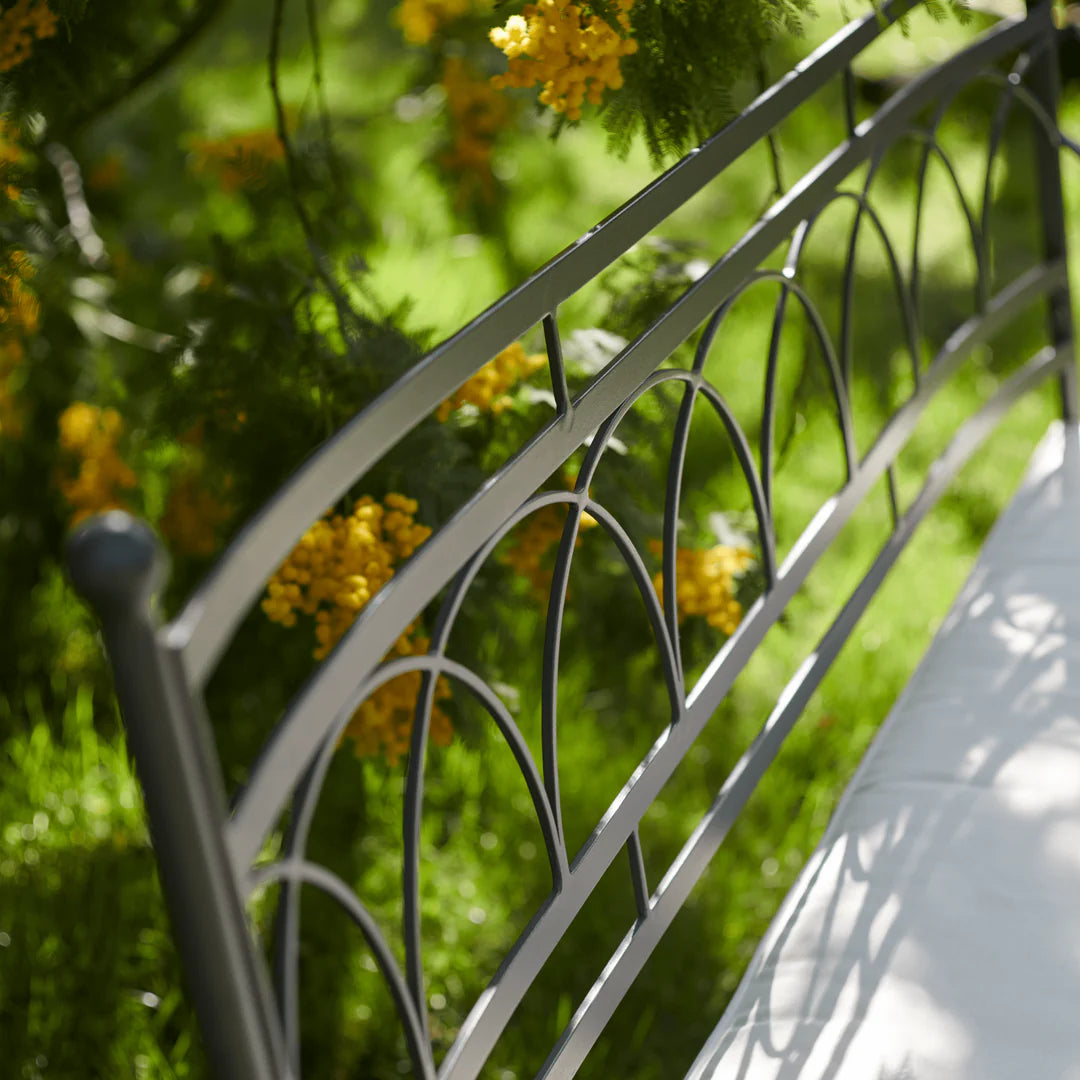 A classic garden bench that’s built to endure. Sweeping armrests and intricate fretwork across the backrest reflect the Regency balconies and railings of Cheltenham’s namesake spa town. Subtle ergonomic curves throughout and a showerproof cushion ensure the utmost comfort, too.