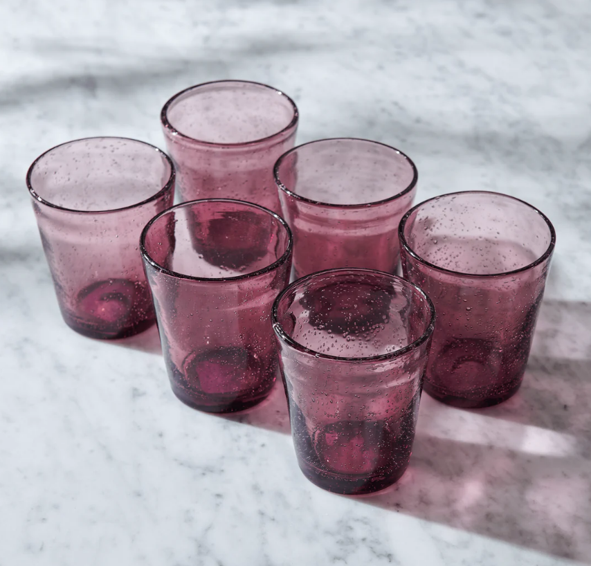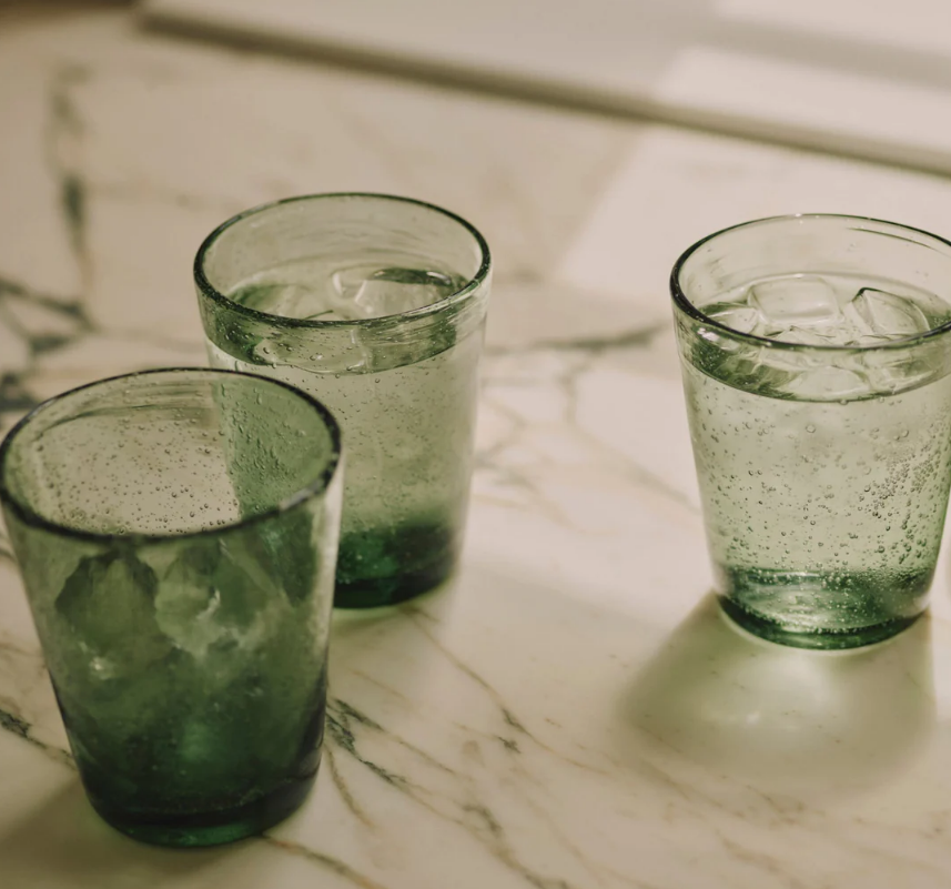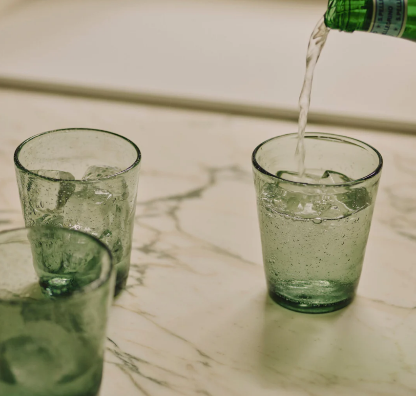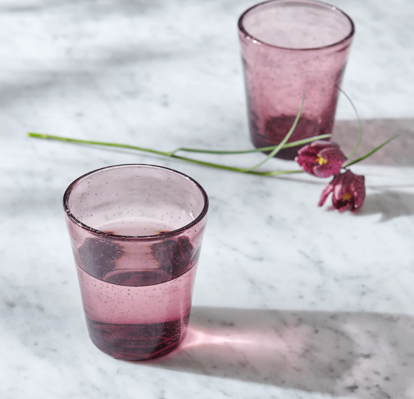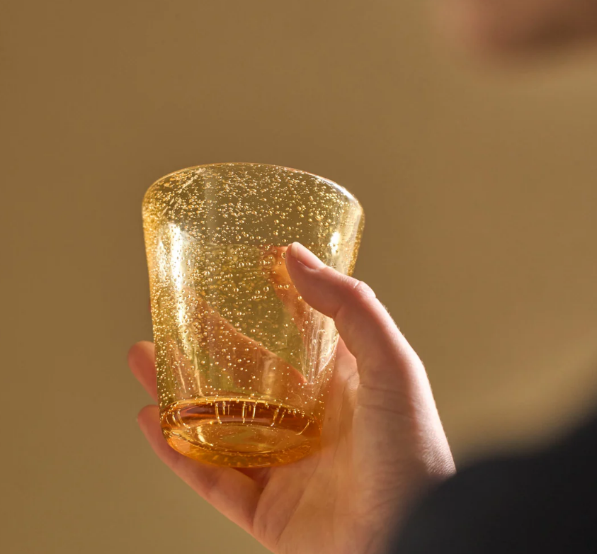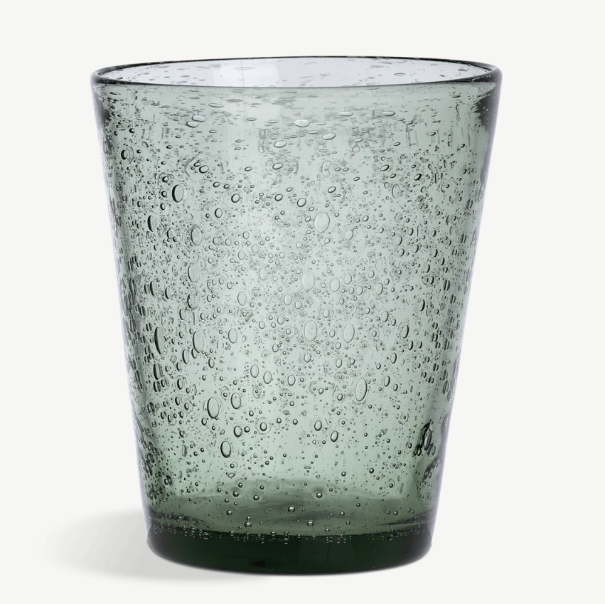 Our everyday Ella tumblers come in a number of easy-going colours. They’re fun to use and feel weighty and thick to hold. They remind us of recycled glass, but are just a little more elegant with their hundreds of tiny trapped air bubbles – like raindrops on a windowpane.