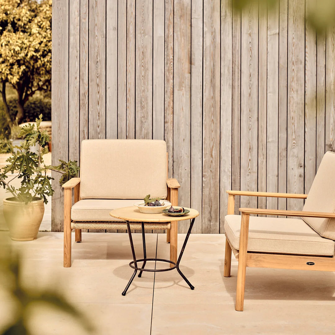 Our Kew relaxed chair has been designed with laidback alfresco lounging in mind. Its angled silhouette and handwoven rattan panels draw upon Mid Century influences, while the use of solid teak ensures lasting durability. Pair it alongside our Kew sofa and coffee table, for a relaxed seating area.