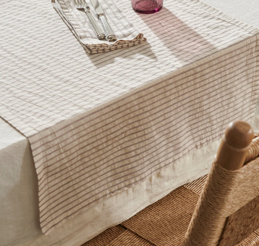 Made from a cotton-linen blend, the Maeve table runner features a woven Jacquard stripe that introduces subtle pattern and texture to any dining table. With its relaxed, soft touch and gentle drape, it perfectly complements other textiles in the collection.
